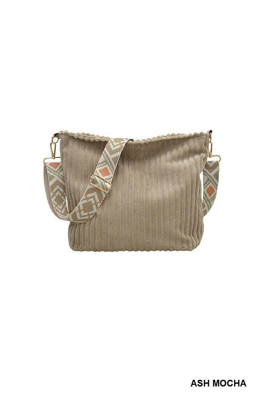 Corduroy Tote Bag With Guitar Shoulder Strap