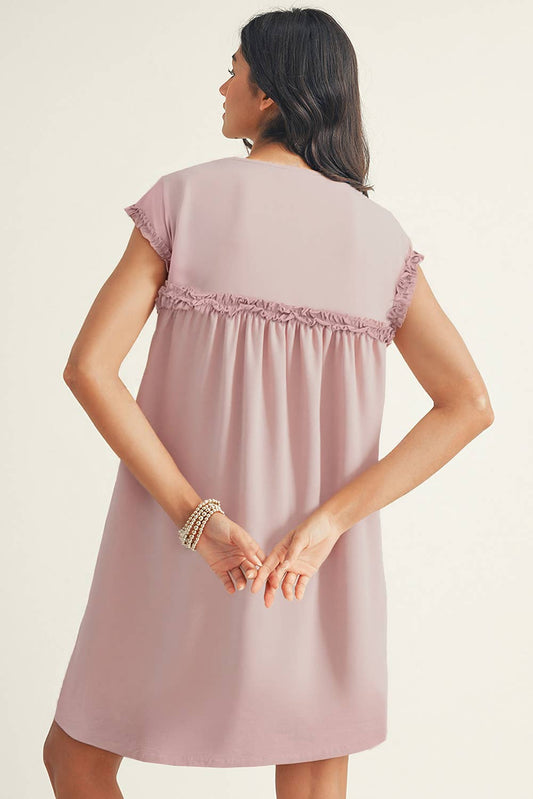 Frilled Trim Crew Neck Loose Fit Mini Dress