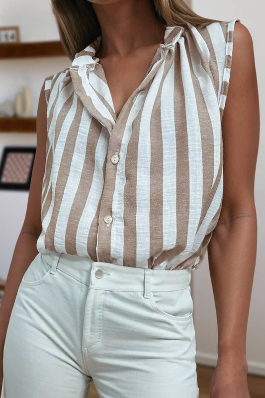 Stripe Casual Button Down Sleeveless Shirt | S-XL