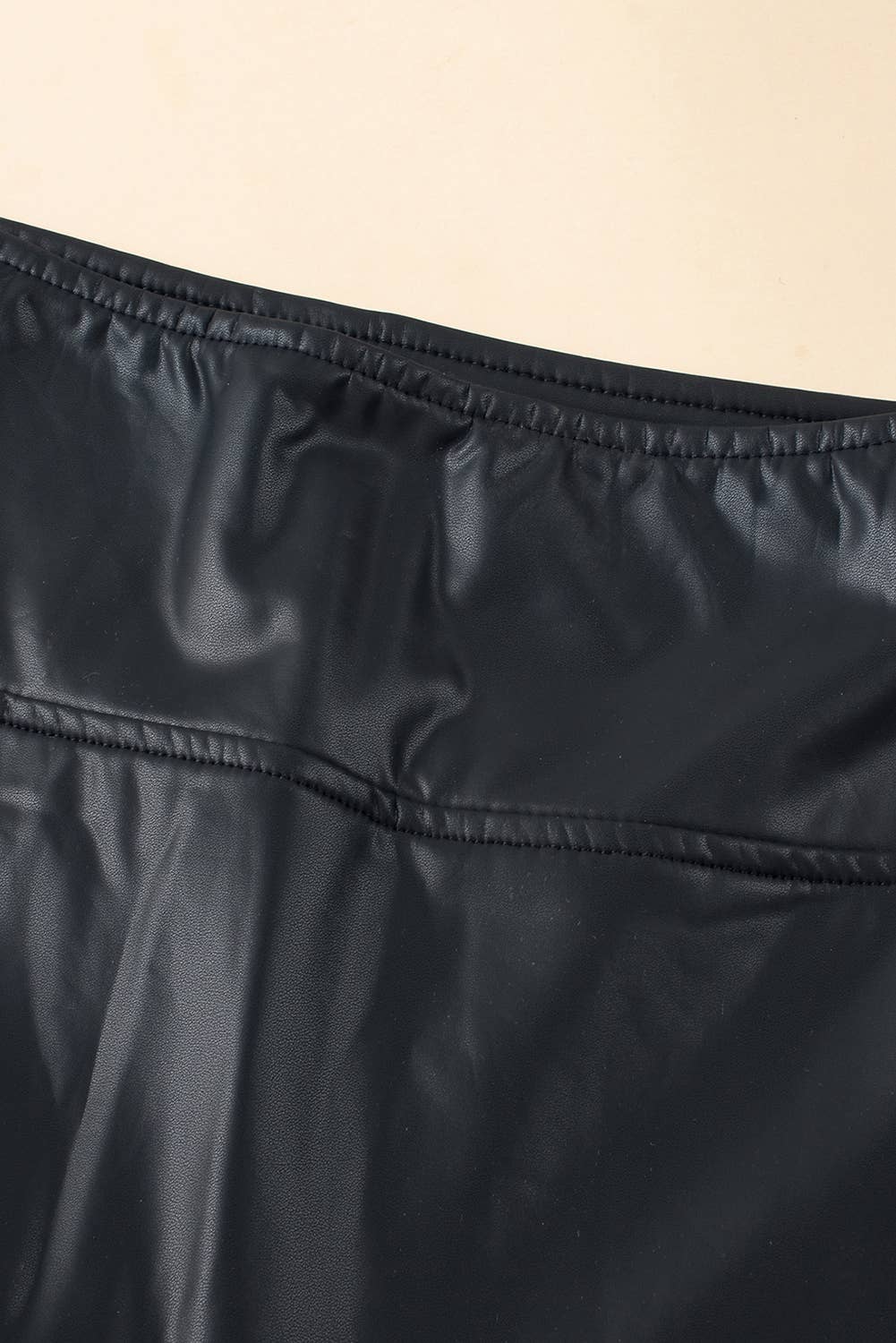 Made from high-quality faux leather material, these leggings provide a comfortable and stretchy fit
