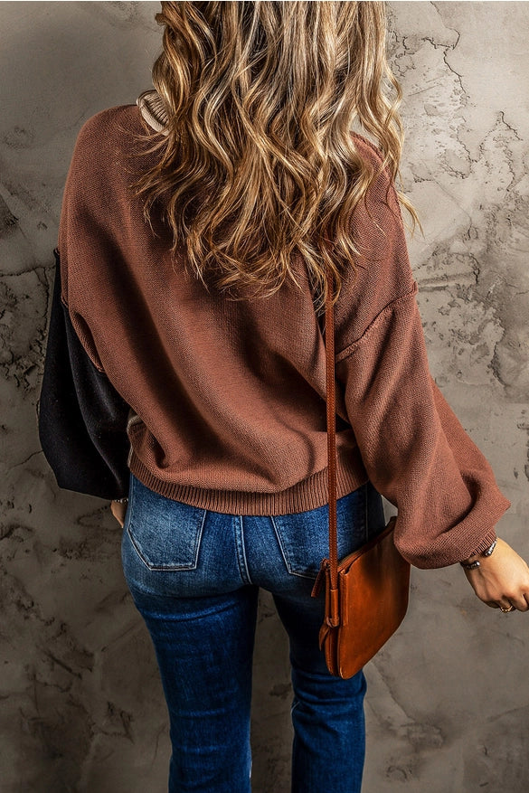 Colorblock Bishop Sleeve Ribbed Trim Sweater
