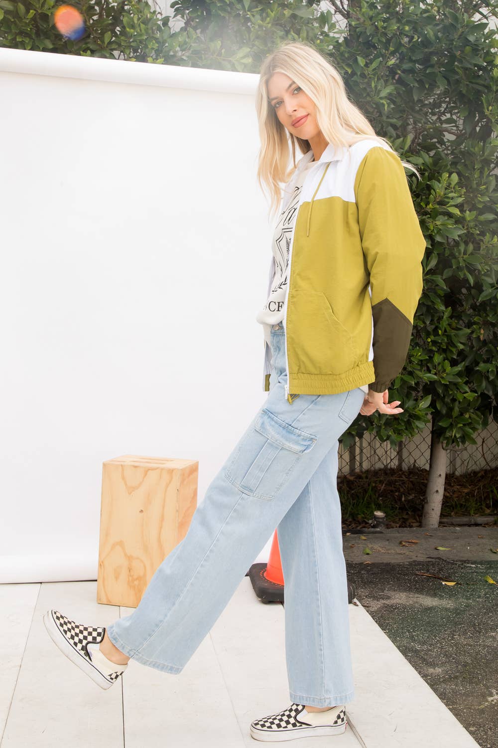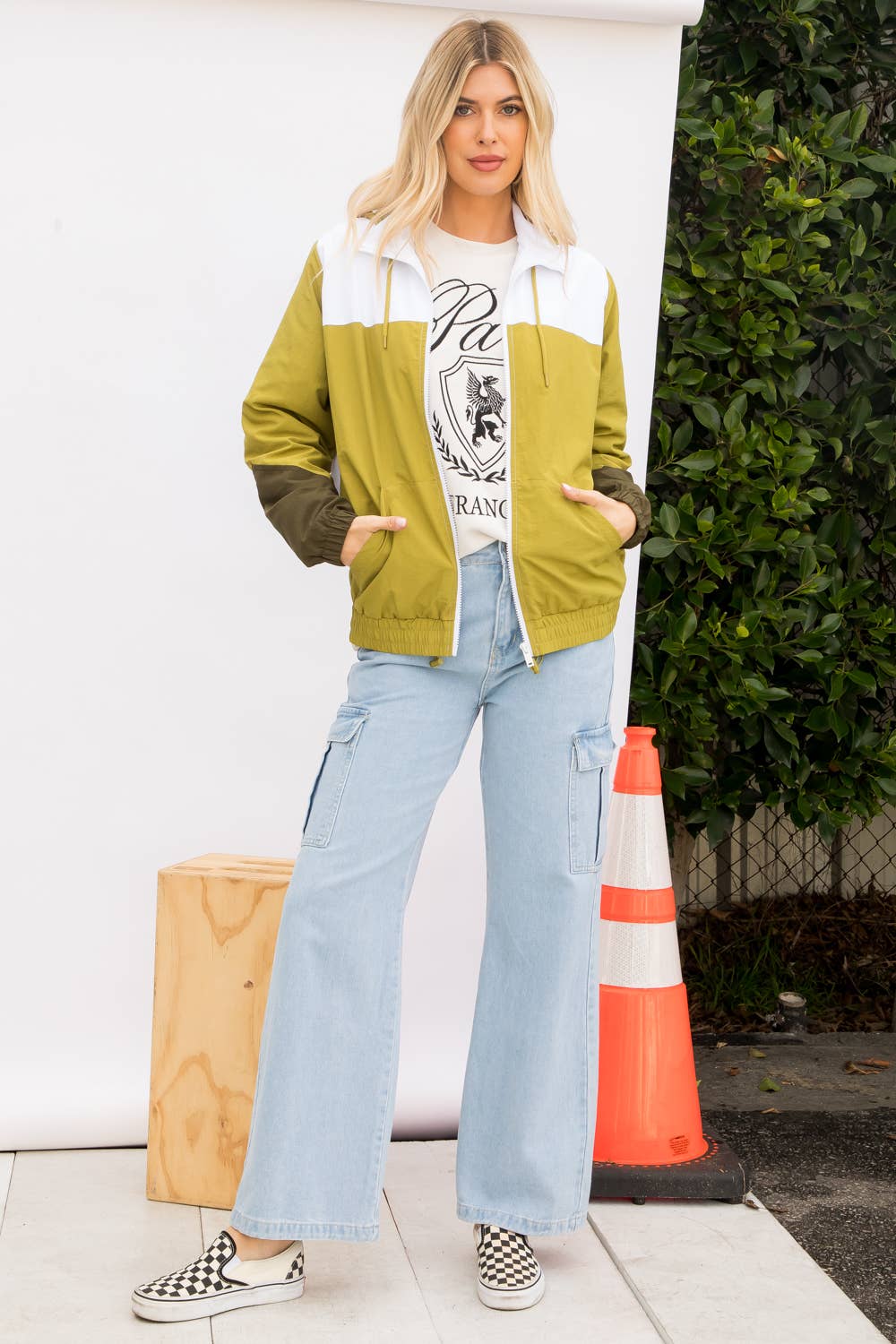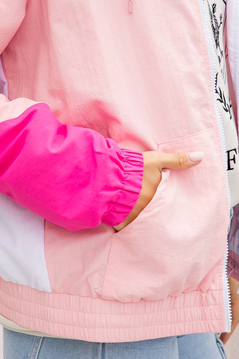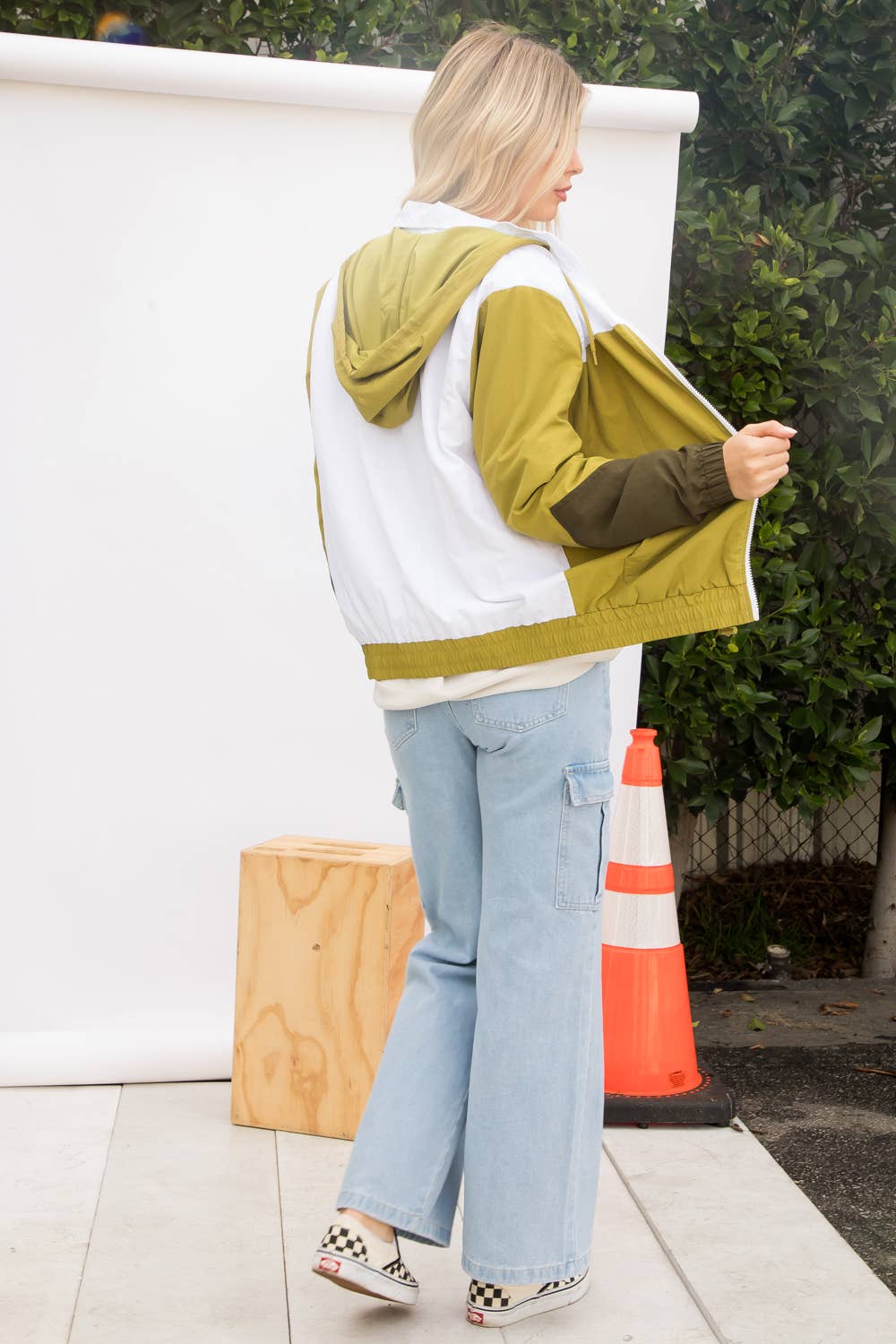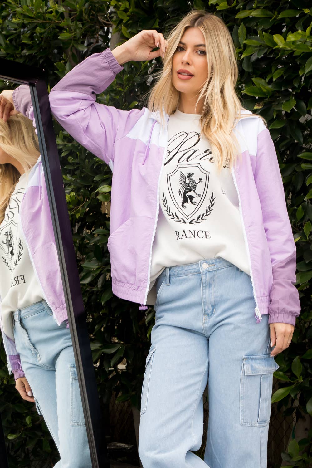Regular Size Hooded Jacket Long Sleeve Dry Nylon Fabric Color Block Kangaroo Pocket Elastic Band at Cuff & Waist.