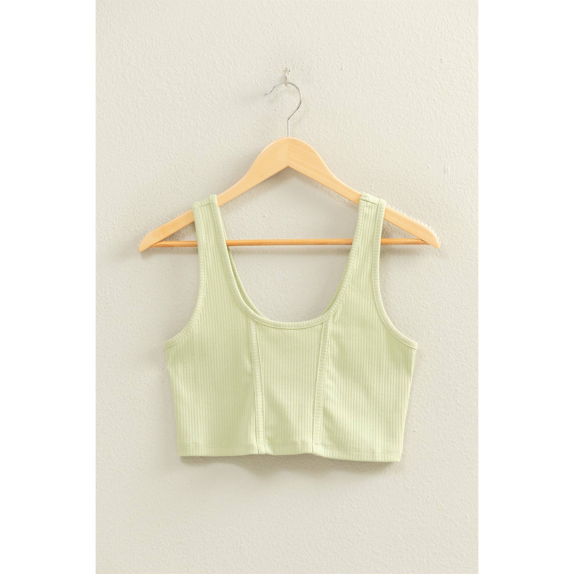 Tank Top Featuring A Classic Scoop Neckline, Sleeveless Bodice, And Fitted Silhouette. Designed With Contrasting Ribbed Knit Fabric, Twin Vertical Seam Accents, And A Cropped Hem. Ribbed Trim Along The Neckline And Armholes Provides Added Texture And Structure.