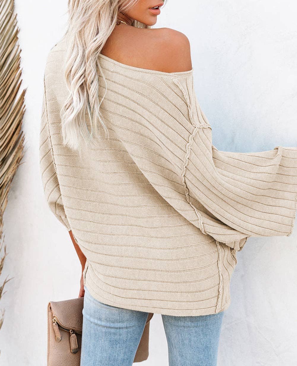 This casual ribbed knit top has a wide neckline, dolman sleeves and is finished with a subtle high low hem. The exposed seam design adds an extra fashionable sense. This knit sweater is textured and casual for most occasions. The relaxed fit is suitable for most body shapes.