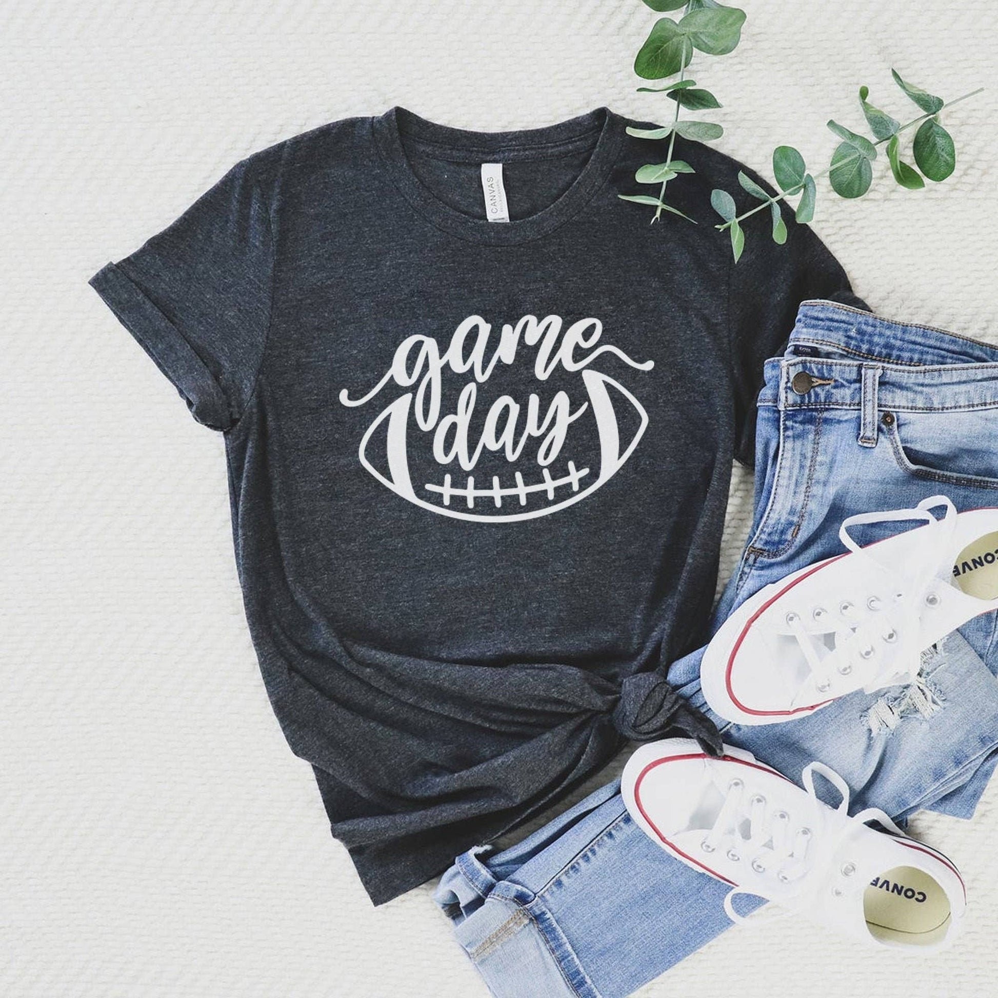 Football game day teeThis unisex Bella + Canvas graphic tees feature our 'Game Day' football design printed in white on the front, with high quality screen printed heat transfers. These football tees are a great gift idea or perfect to wear on game day!These Bella Canvas shirts are super soft, flexible and comfortable - not the cheap, stiff t-shirts you see in a lot of stores!