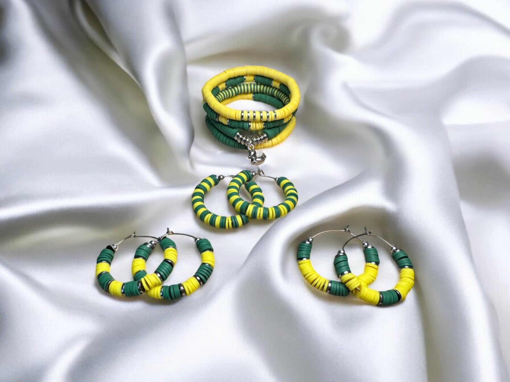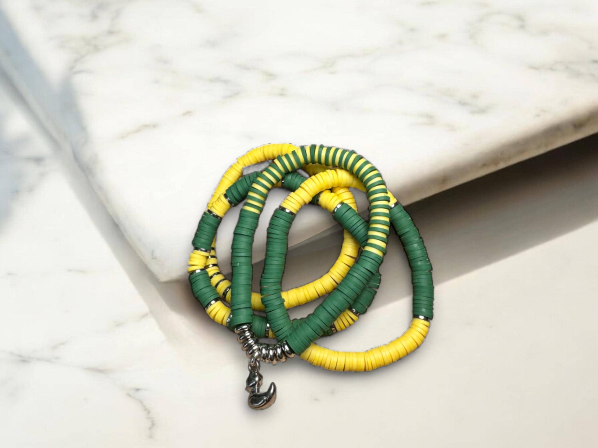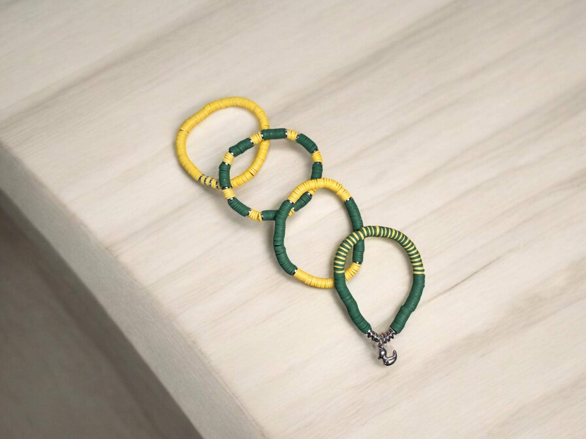 Green And Yellow Game Day Bracelet Stack | Customizable | Game Day Bracelet | Football Bracelet | Team Colors | Green And Yellow Bracelet