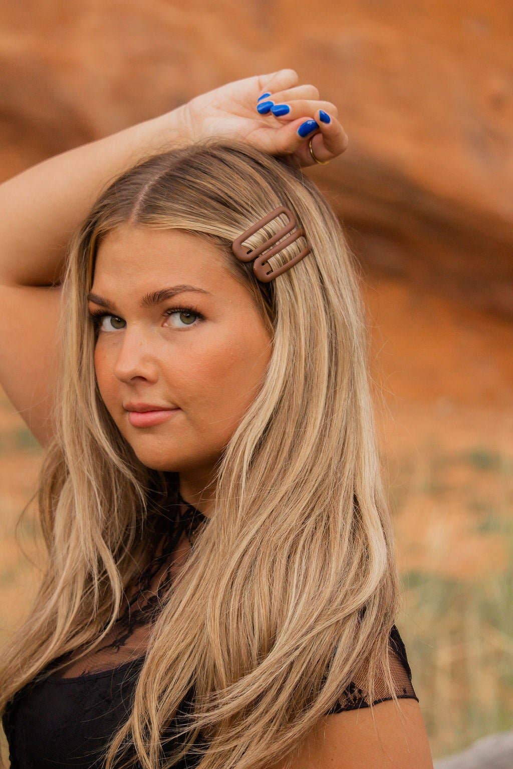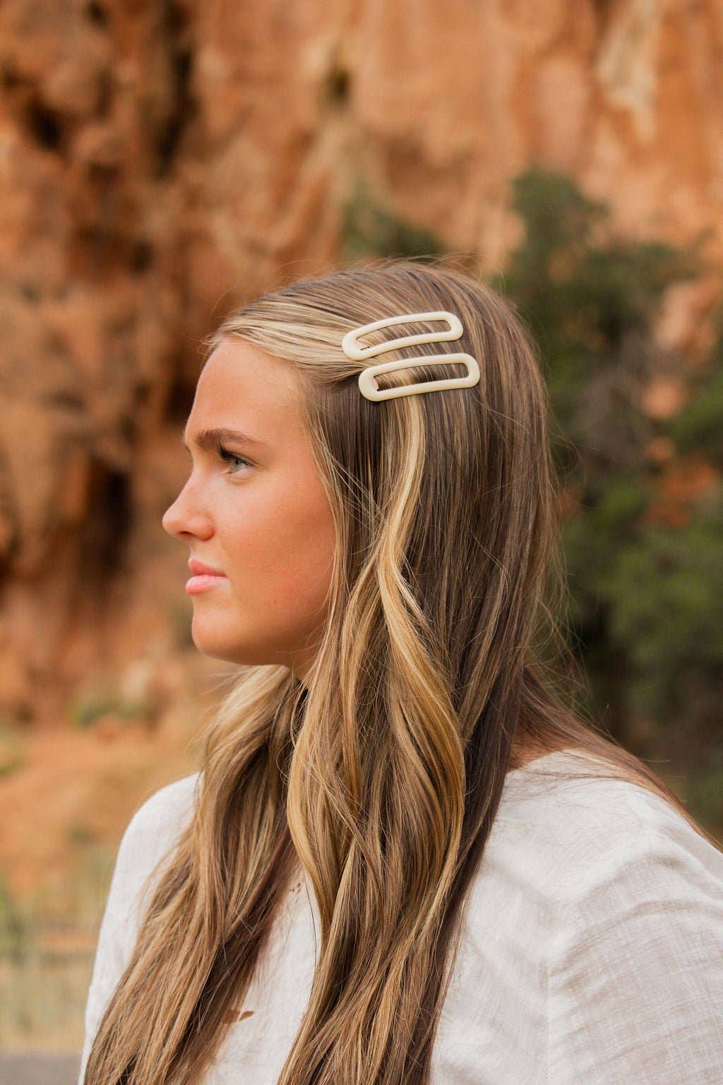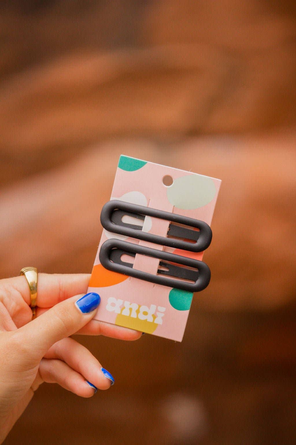 These claw clips are a must for your accessory bag! Our clips put a beautiful ANDI touch on the hair clips you thought you knew. Every Andi clip is specifically made to hold your hair as cute as humanly possible, all day long. These snap clips come in packs of two, and four gorgeous colors! They have a unique but simple, elongated, oval cutout shape with a matte finish. Pair this with your favorite sweats, date night dress, or work fit!