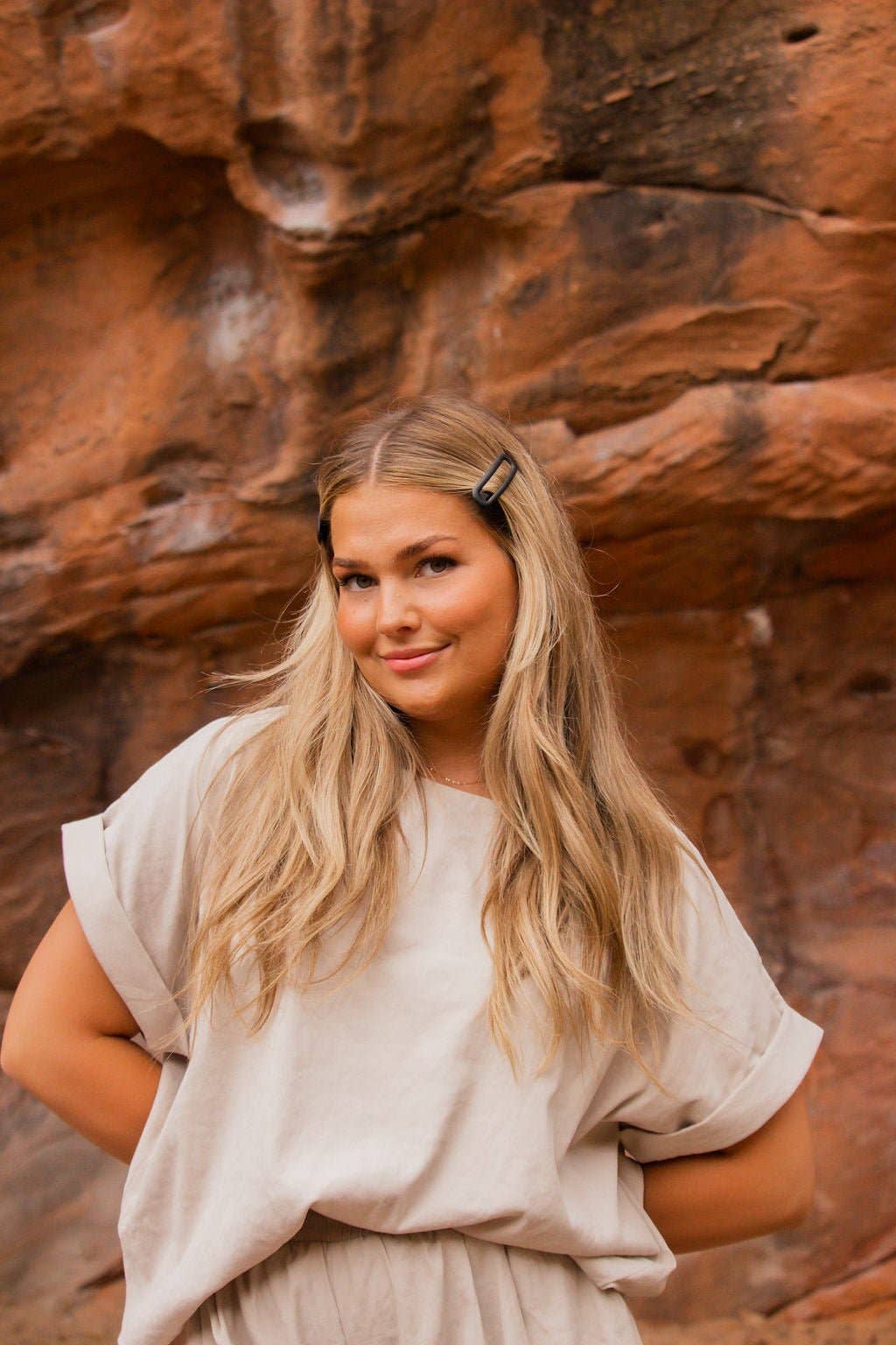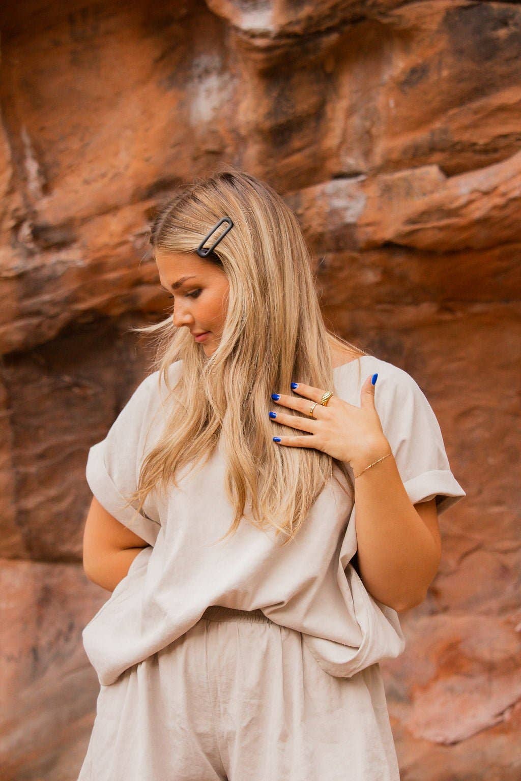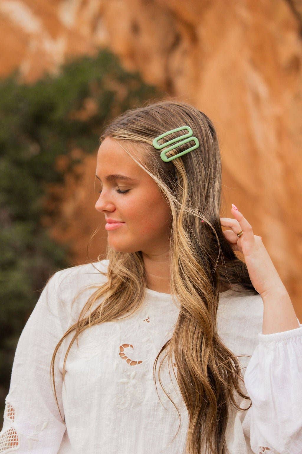 These claw clips are a must for your accessory bag! Our clips put a beautiful ANDI touch on the hair clips you thought you knew. Every Andi clip is specifically made to hold your hair as cute as humanly possible, all day long. These snap clips come in packs of two, and four gorgeous colors! They have a unique but simple, elongated, oval cutout shape with a matte finish. Pair this with your favorite sweats, date night dress, or work fit!