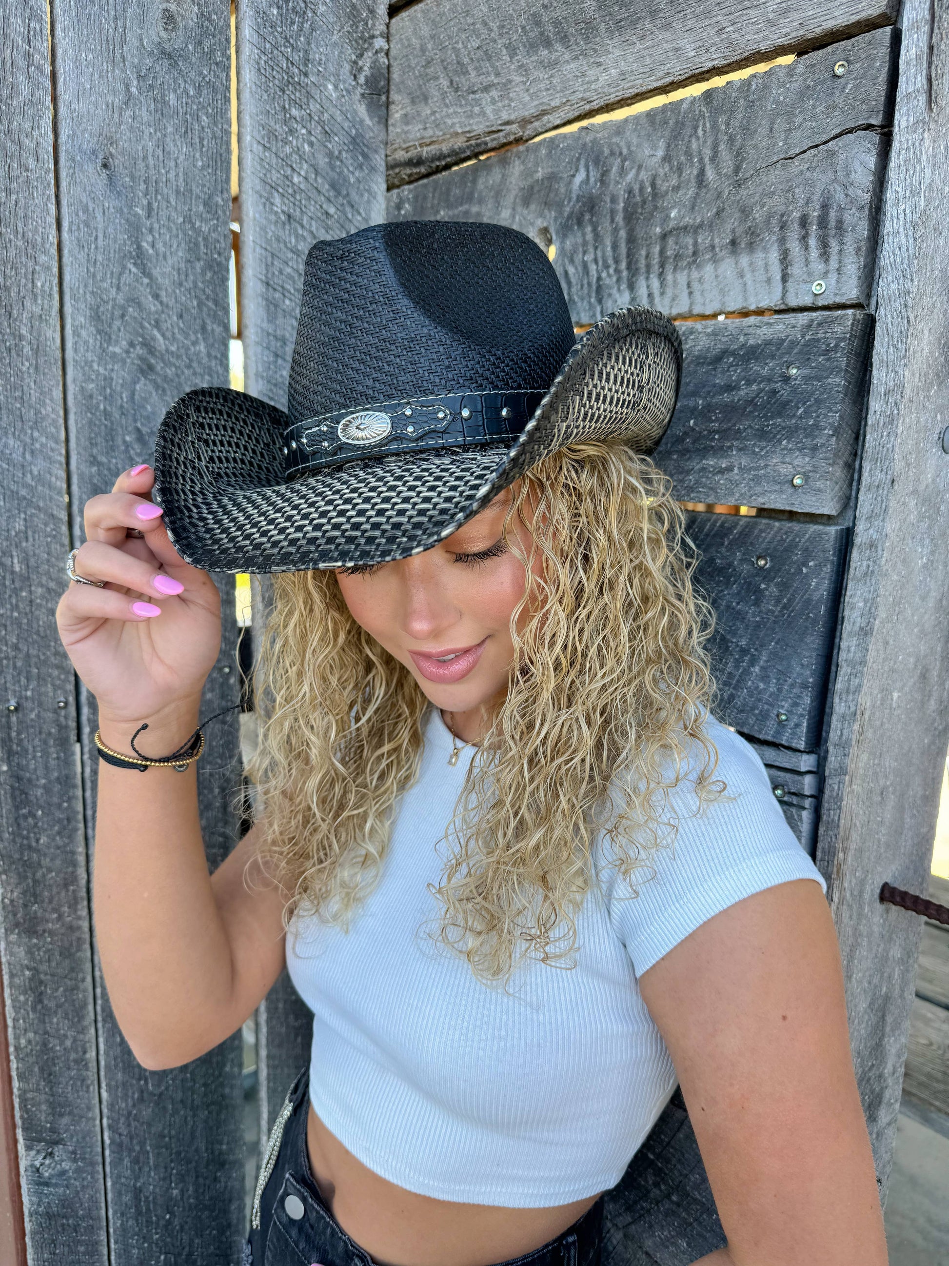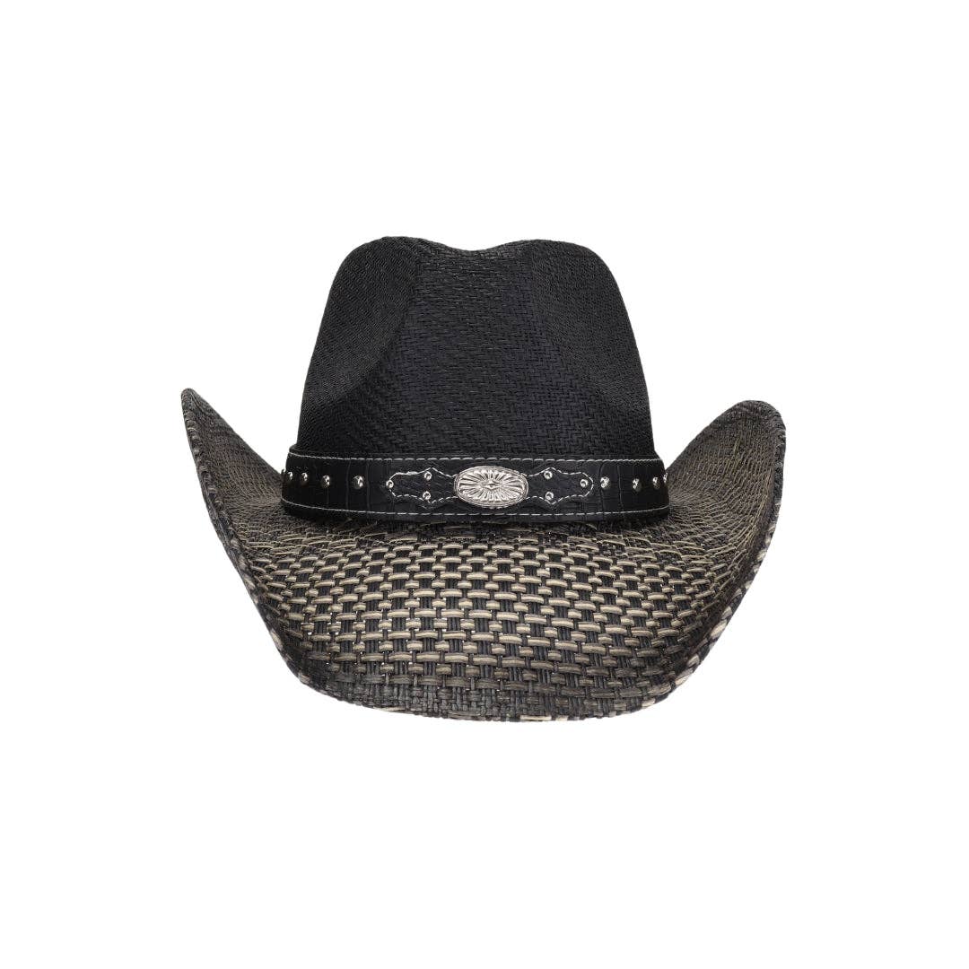 An cowboy hat featuring a fancy texture and sleek western band!