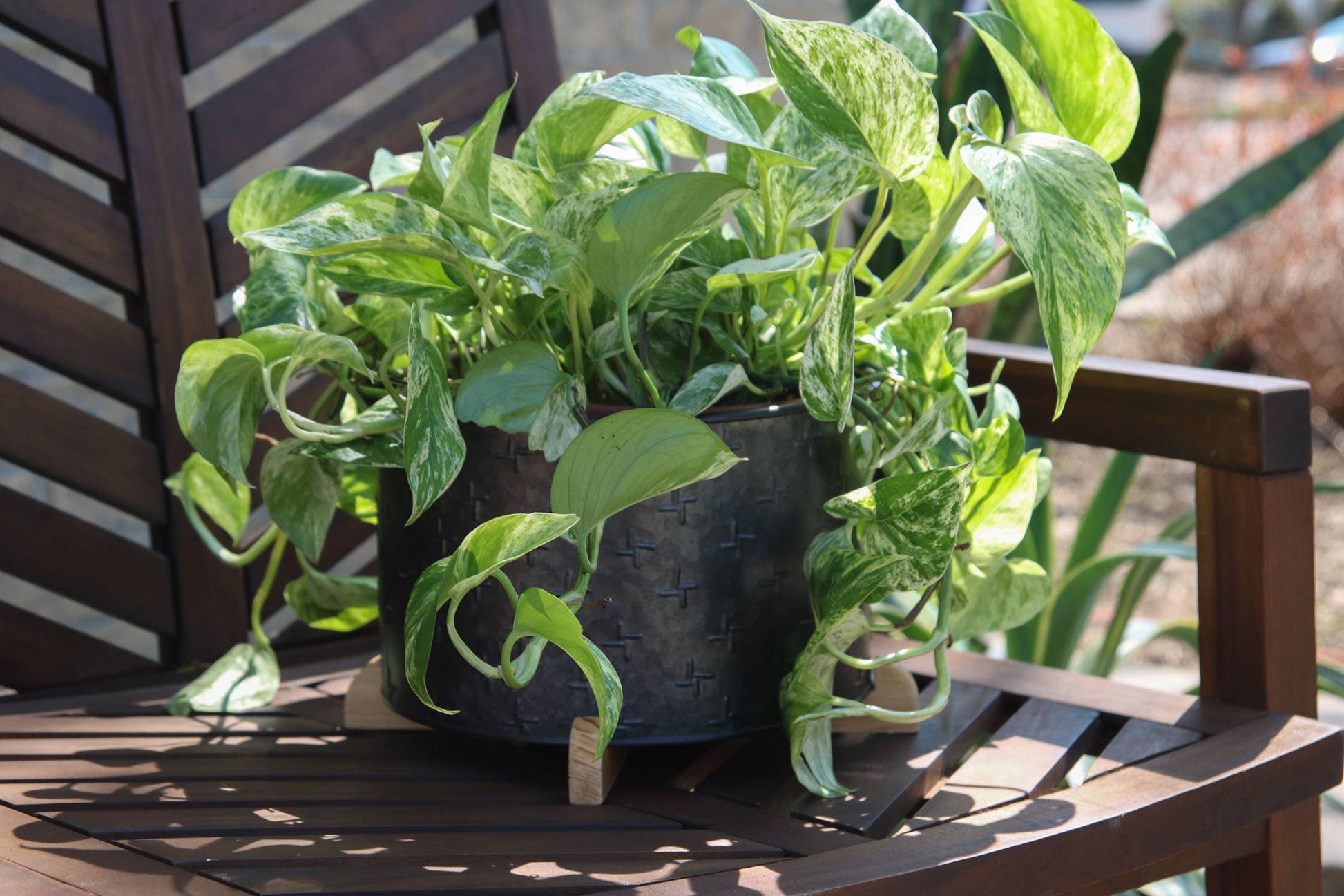 Make a statement in your space with this modern farmhouse style planter from Foreside Home & Garden. The black galvanized metal is softened with a natural wooden stand and makes this piece a great accent to any decor. With the texture trend in mind, this planter is crafted with an embossed metal that features a subtle ‘plus’ pattern. Potted greenery will really pop against the black metal and compliment the natural tones of the wood. The wooden stand is removable for easy adjustments. -No drainage holes -Metal planter is removable from wood stand. -Great multifunctional planter that can double as storage or a standalone decorative accent. -Material: Metal & Wood -Dimensions: 9.75 x 9.75 x 6.5"H; Interior Dimensions: 6 x 5.5" -Embossed metal is finished with a black galvanized finish, contrasted by a warm wood accent stand.