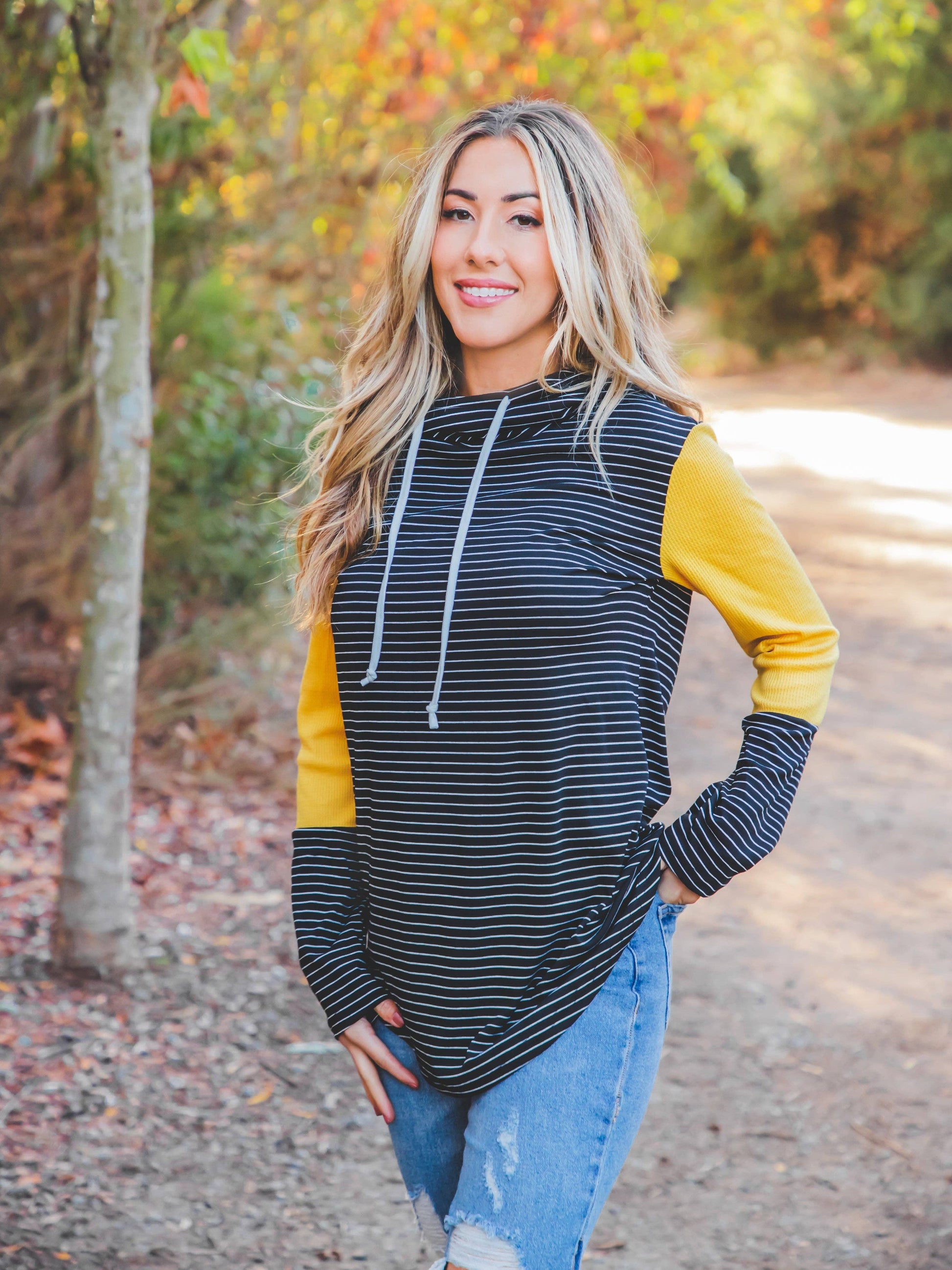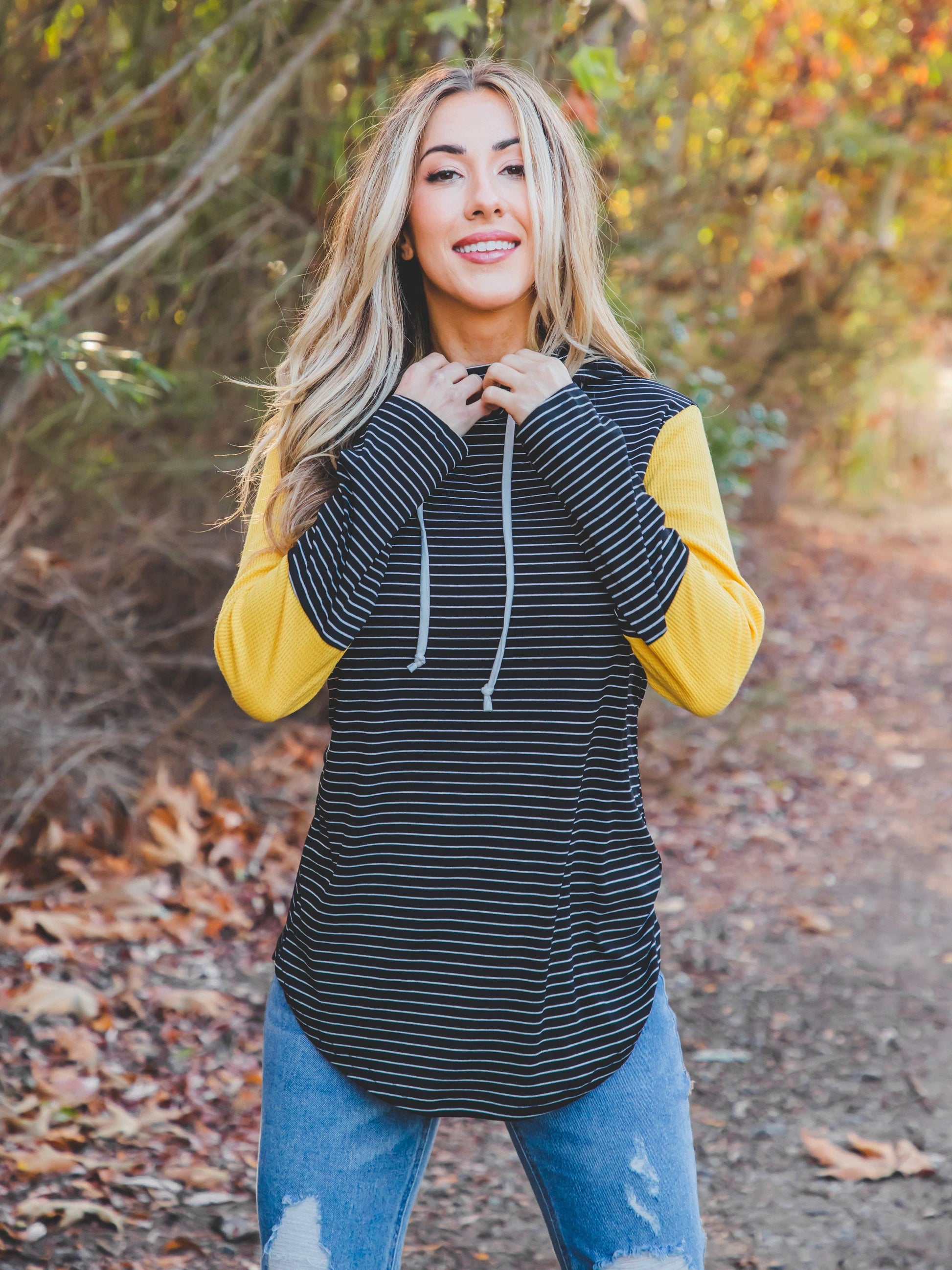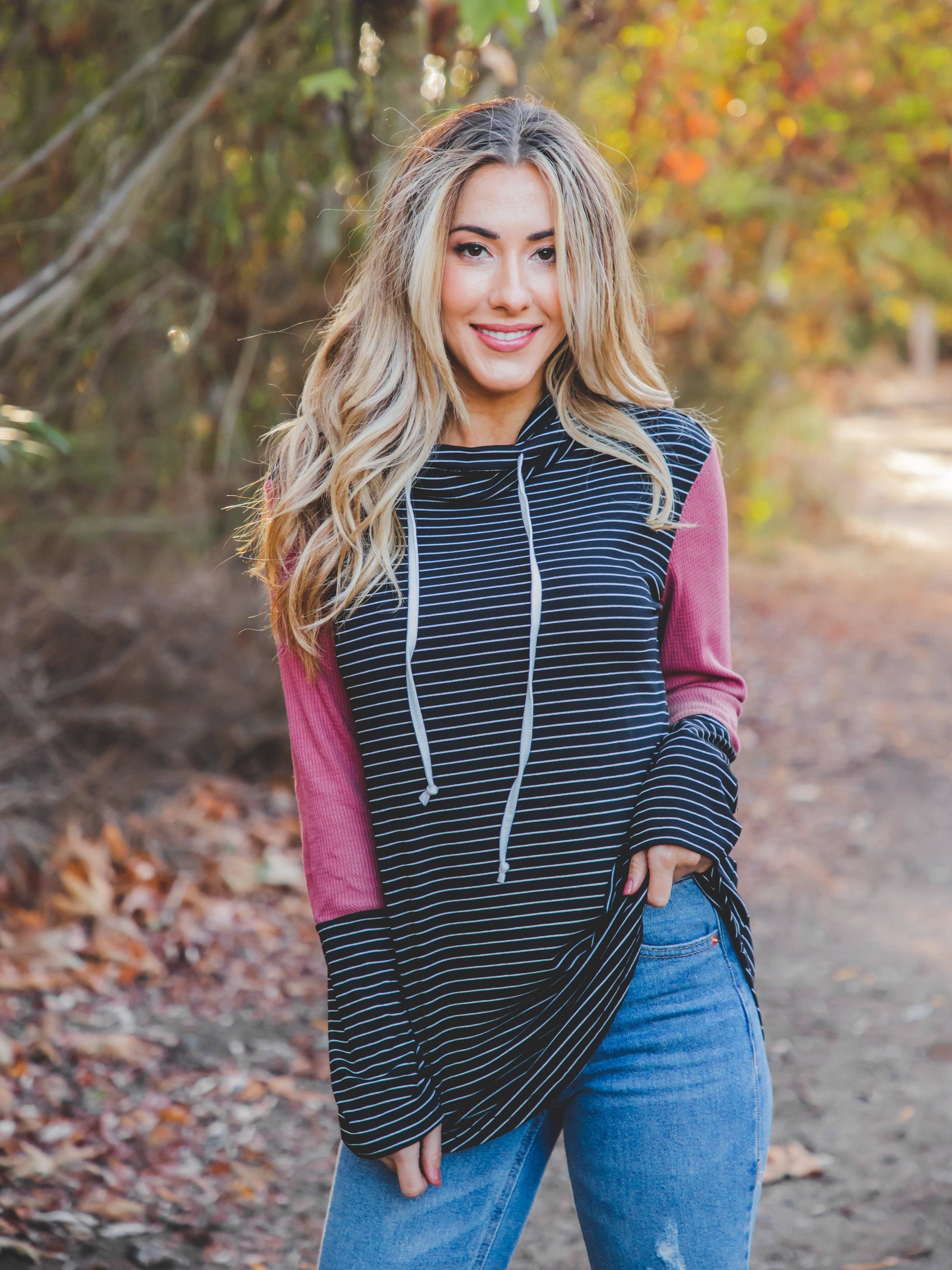As the temperatures drop, stay fashionable and comfy with our Selena Hoodie. Wear this hoodie alone, or pair it with a coat for extra warmth. With its sleek striped pattern and beautiful fall colors, these hoodies are a perfect go-to item for any outfit.