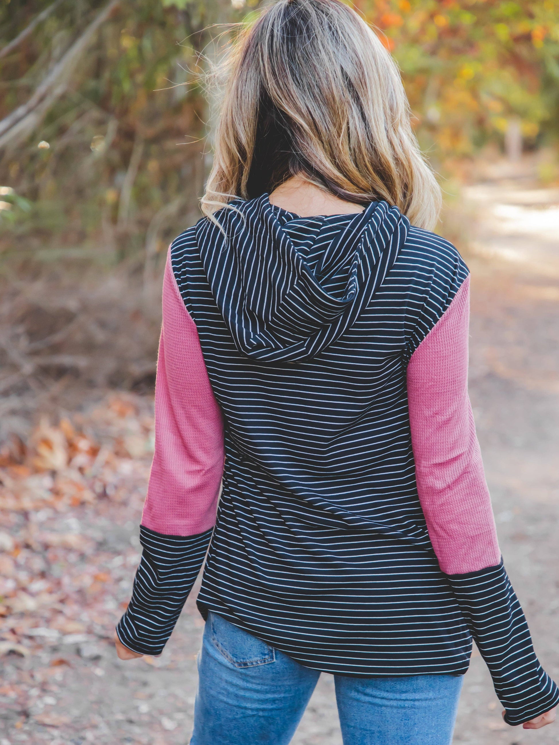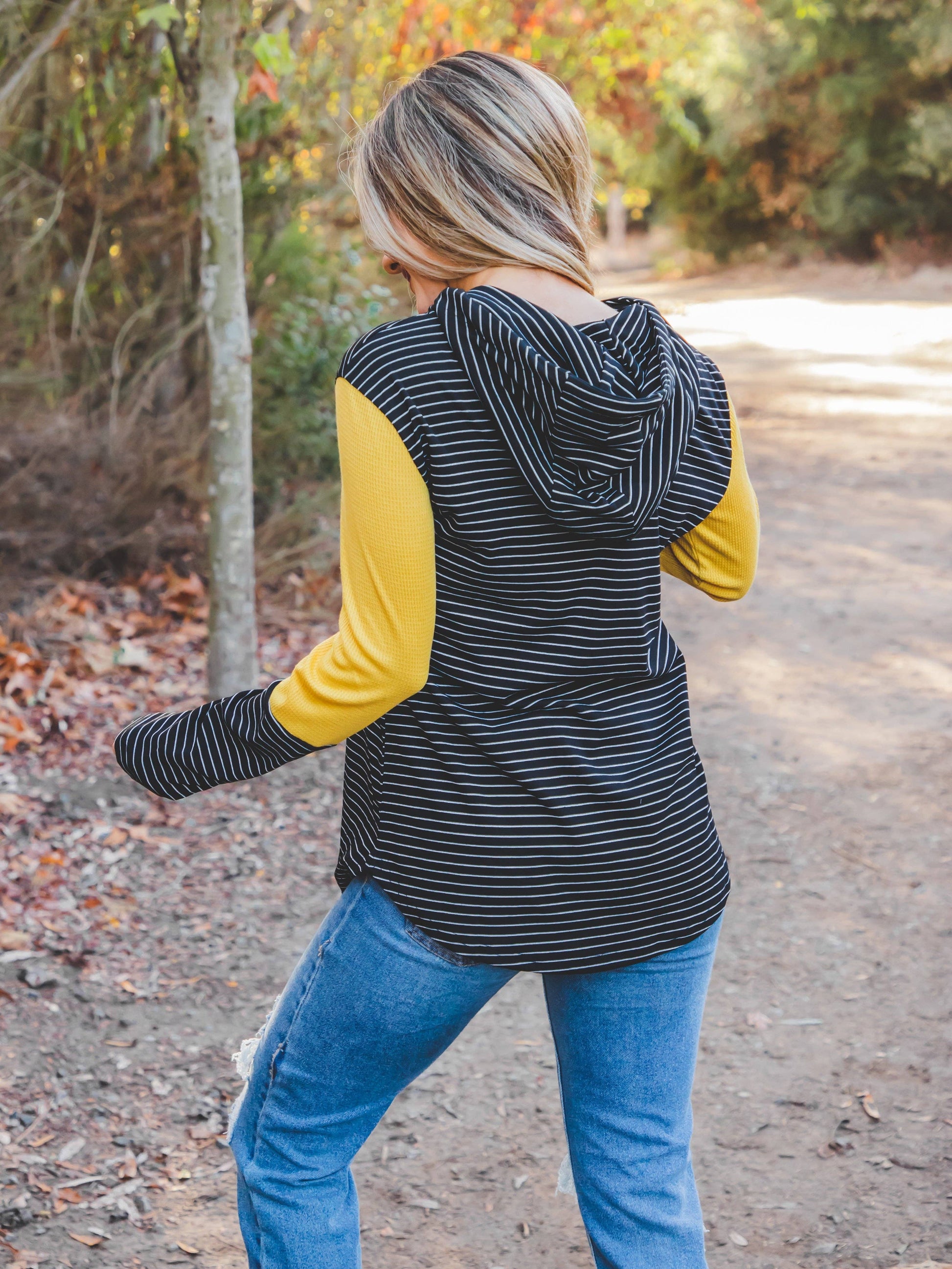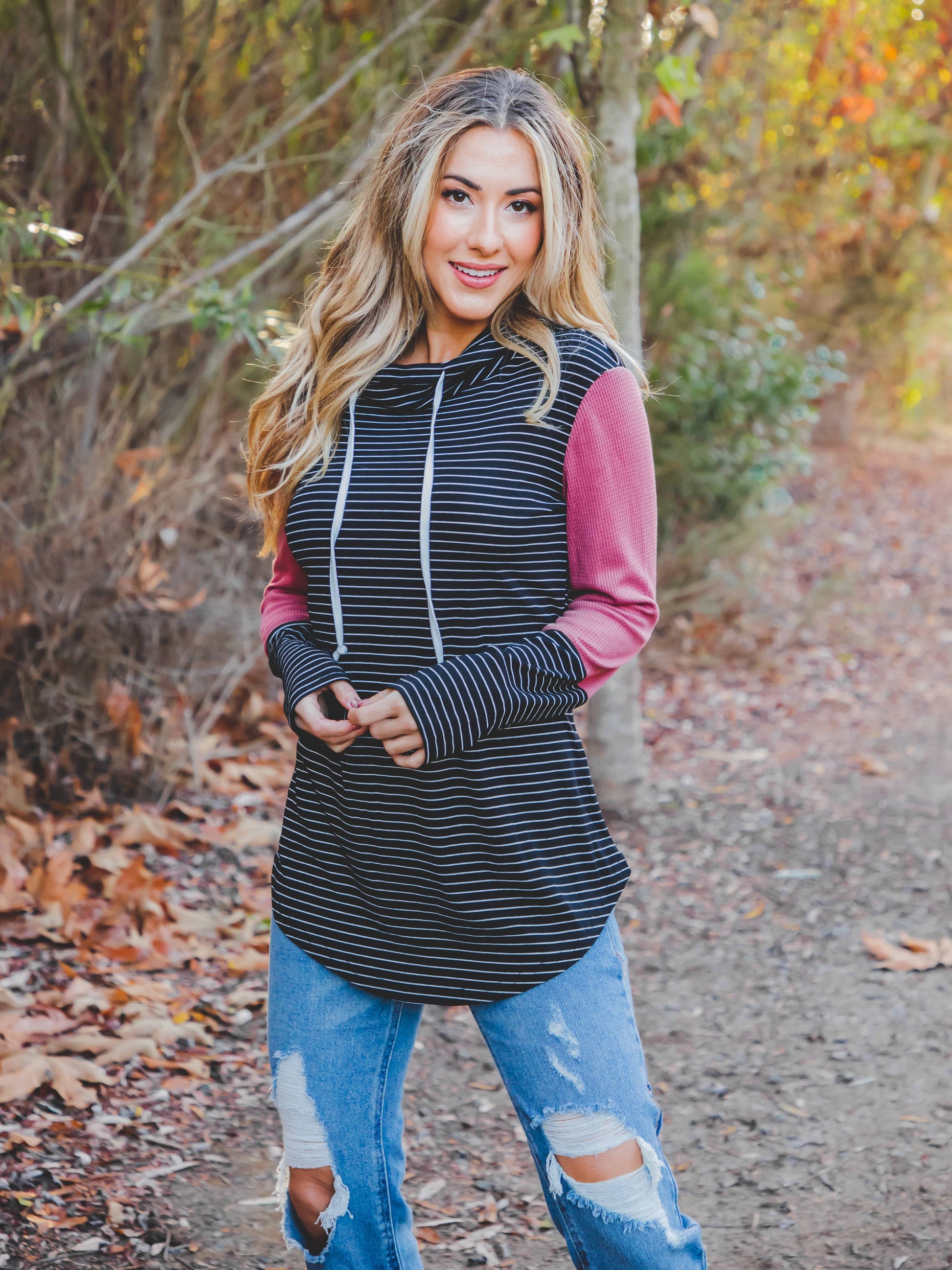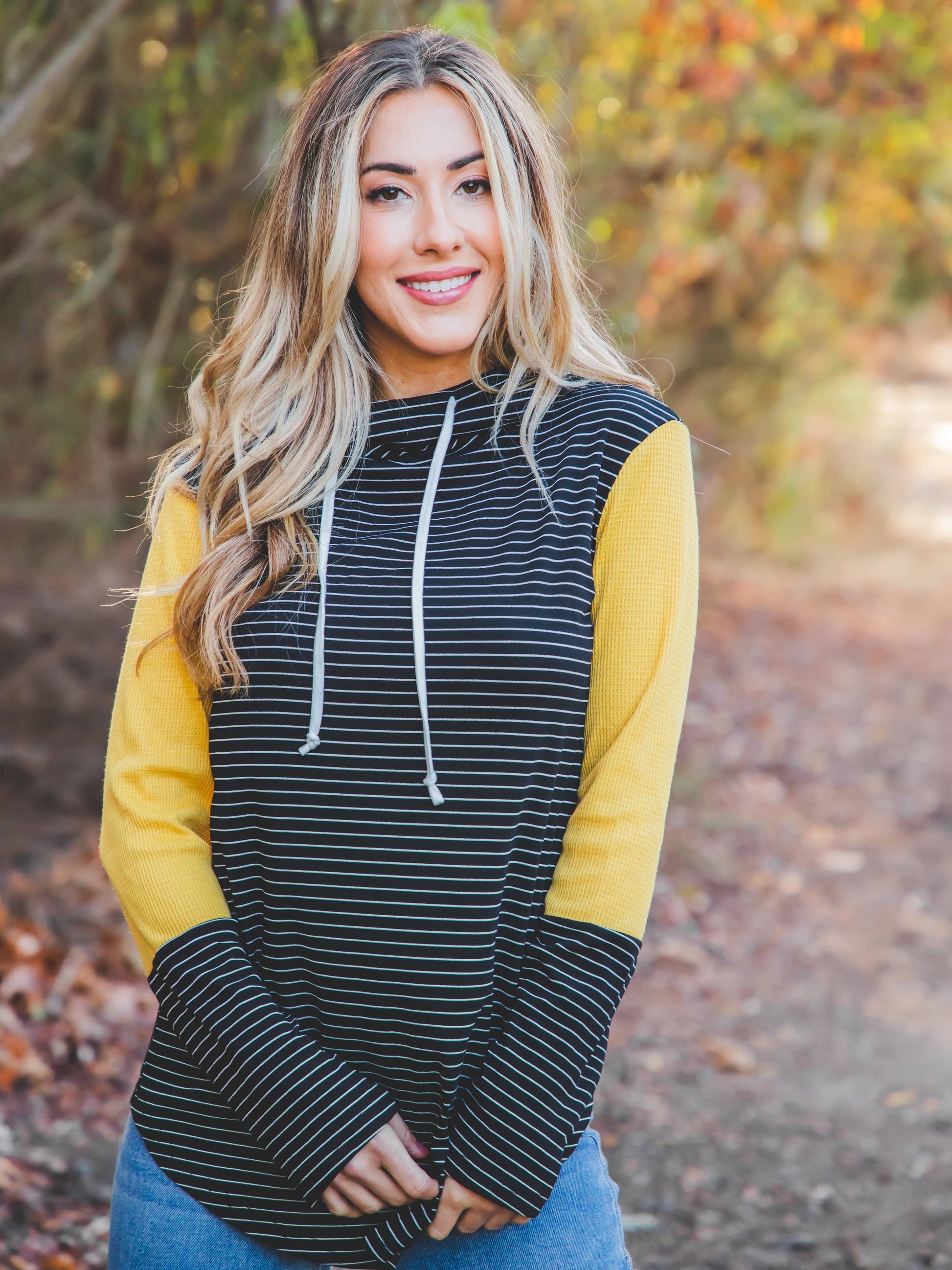 As the temperatures drop, stay fashionable and comfy with our Selena Hoodie. Wear this hoodie alone, or pair it with a coat for extra warmth. With its sleek striped pattern and beautiful fall colors, these hoodies are a perfect go-to item for any outfit.