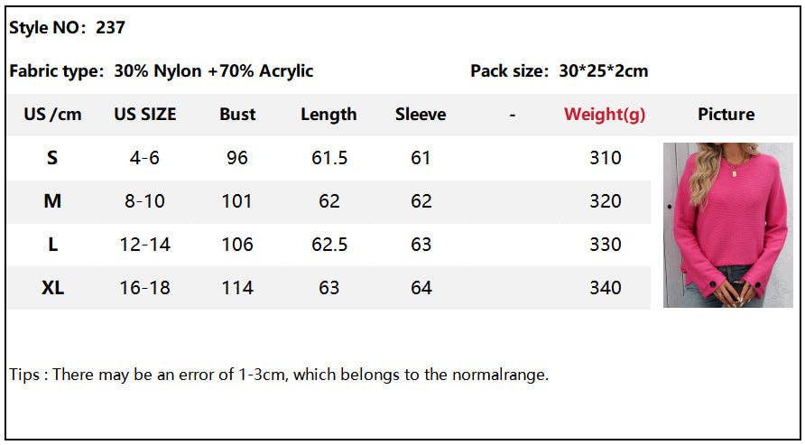 * Fabric: 30% Nylon + 70% Acrylic *
